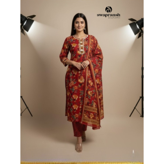 Elegant Maroon Floral Printed Cotton Kurta Set with Dupatta